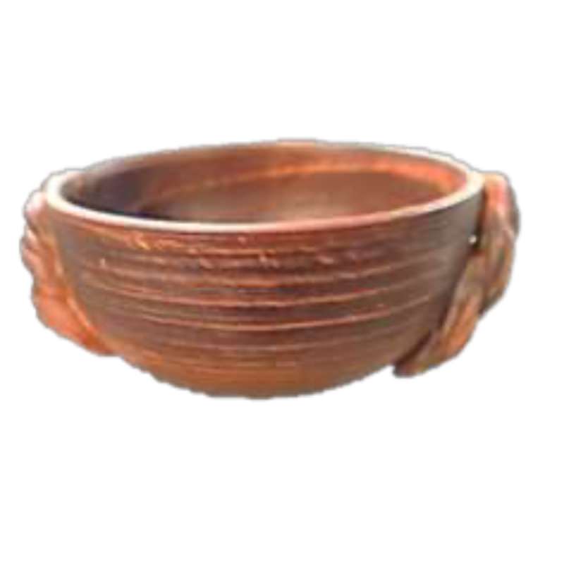 Bulionówka z plecionym uchwytem, czerwona glina