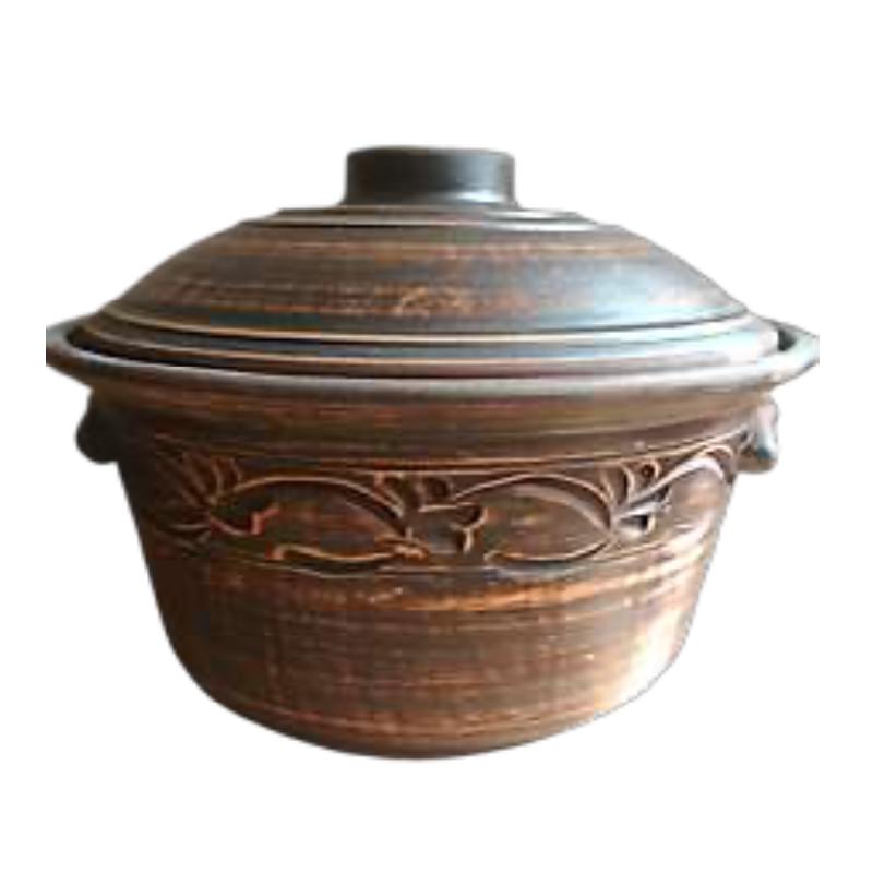 Garnek z uchwytami 2 litra, dekorowany, czerwona glina