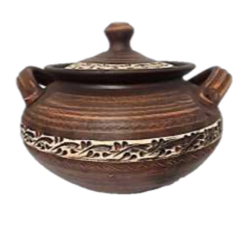 Kasznik ceramiczny 2,5 litra, z uchwytami, angoba, czerwona glina