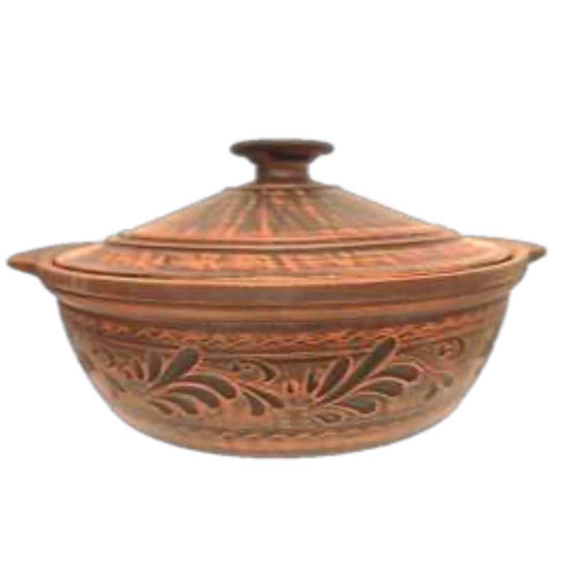 Patelnia, 3 litra, głęboka, z uchwytami, czerwona glina