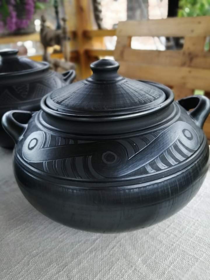Waza dekorowa z pokrywą, Grecka, czarna glina