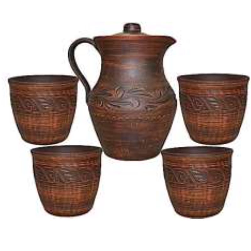 Zestaw dzbanek 1,1 litra + 4 Szklanki, czerwona glina
