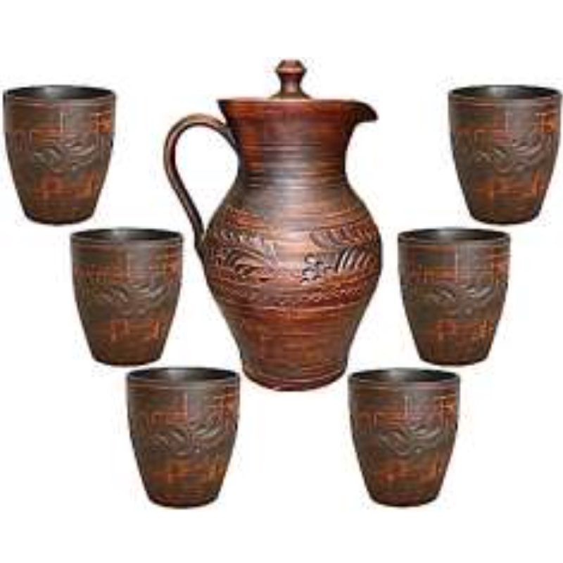 Zestaw dzbanek 2,2 litra + 6 Szklanki, czerwona glina