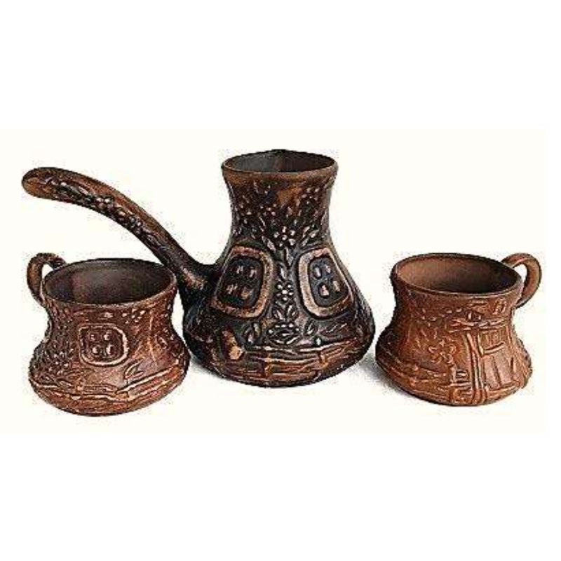 Zestaw Kawiarka “Weś” + 2 filiżanki, czerwona glina